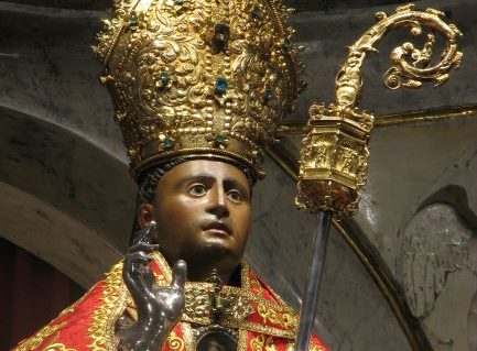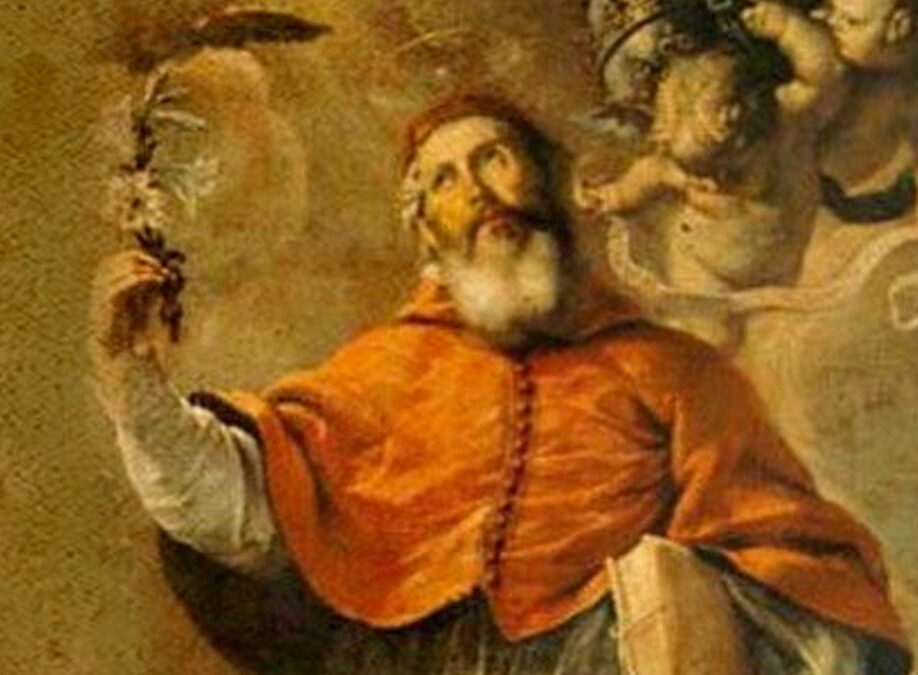 San Severo Obispo de Barcelona, pastor ejemplar, recibe un clavo, como Cristo